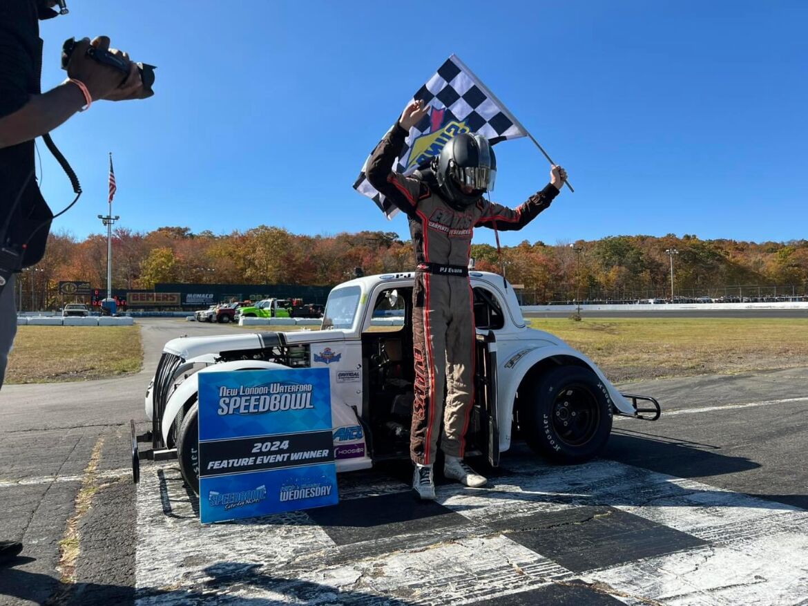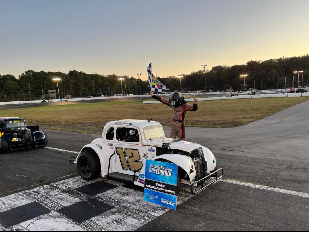 PJ Evans, based in Connecticut, is the defending Legends Cars Saturday night champion at the New London-Waterford Speedbowl. PJ scored 10 victories at the Speedbowl during the 2024 season en route to the championship, winning during both their Saturday night program and their Wednesday night racing.